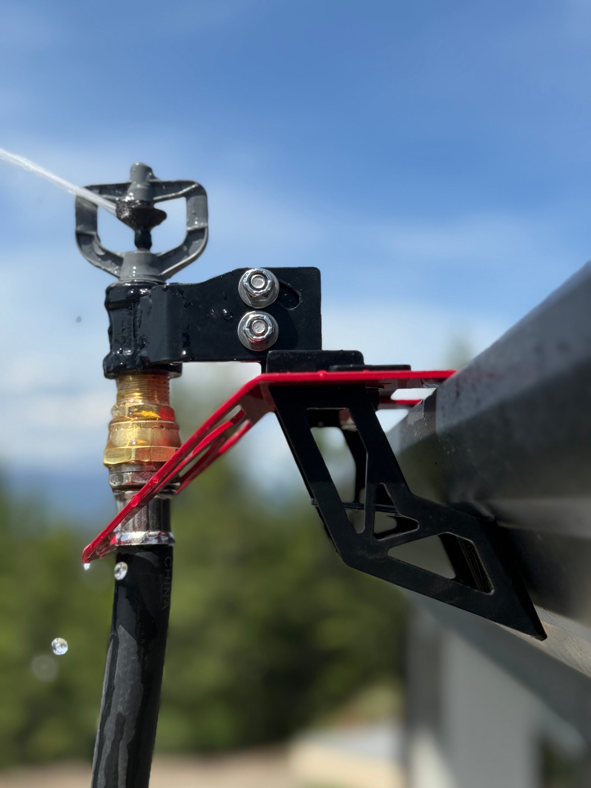 Protect your home fast with our Gutter Mount wildfire sprinkler system. This easy-install roof sprinkler slides over any gutter using a standard extension pole — no tools needed. All-steel, powder-coated construction ensures durability in extreme fire conditions. Fully adjustable sprinkler angle delivers rooftop and perimeter water coverage, creating a critical fire defense barrier. Featuring premium brass fittings and the genuine Nelson R10T sprinkler head for superior wildfire protection. Ideal for roof and property defense during wildfire season.